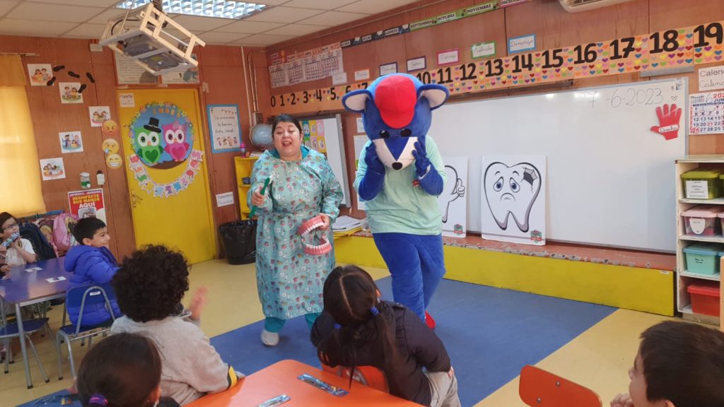 Los estudiantes de Pre kínder a 2° año básico, tuvieron la posibilidad de participar en una actividad didáctica que explica procesos de caries: Diente sano y diente enfermo, un taller de alimentación saludable, educación en técnica de cepillado según edad y motricidad de los niños/as, finalizando con una actividad musical para repasar conceptos.