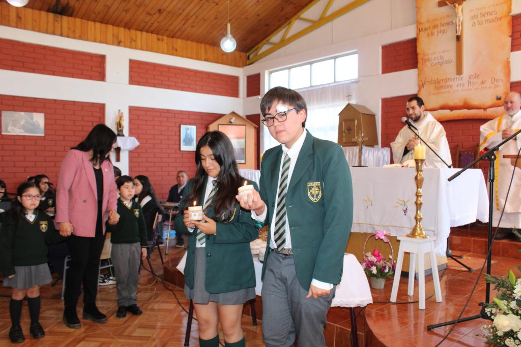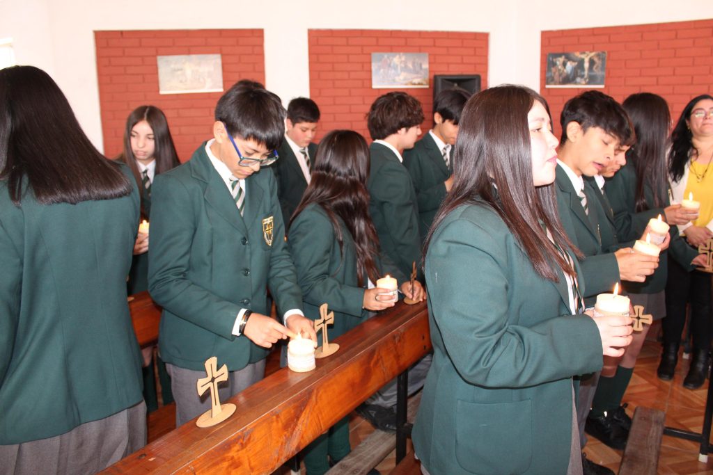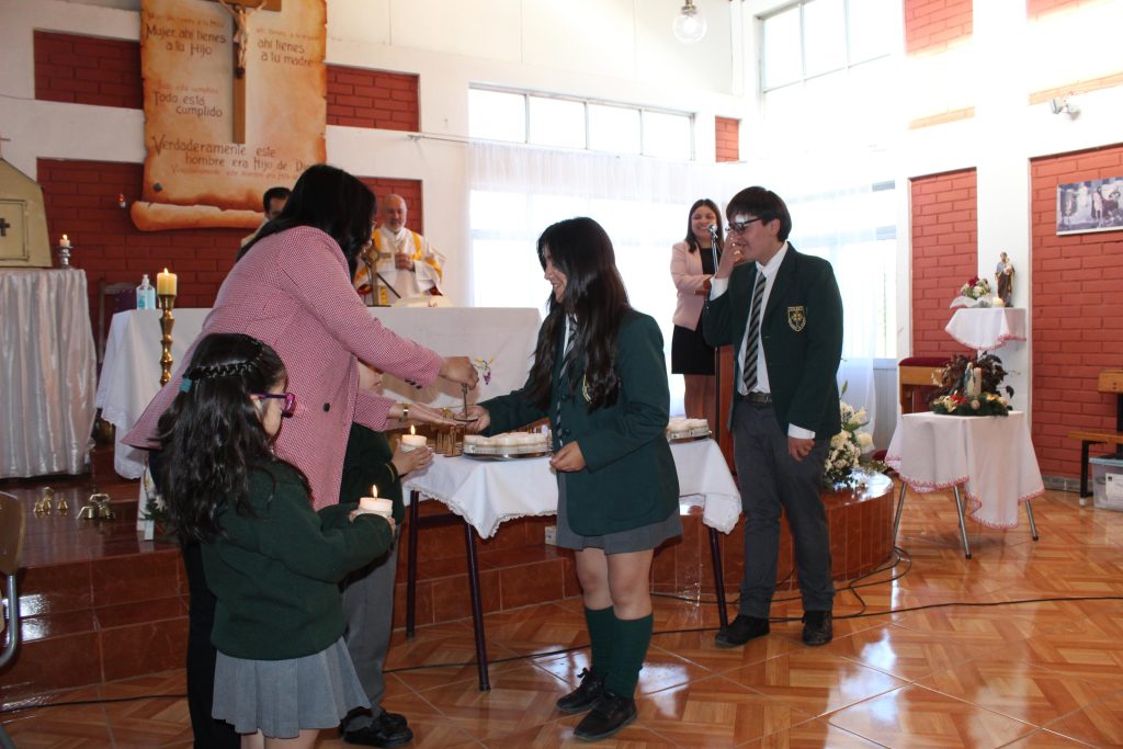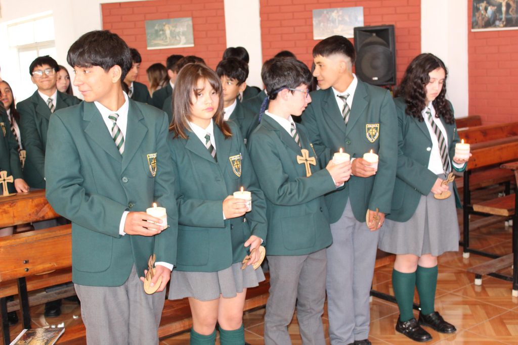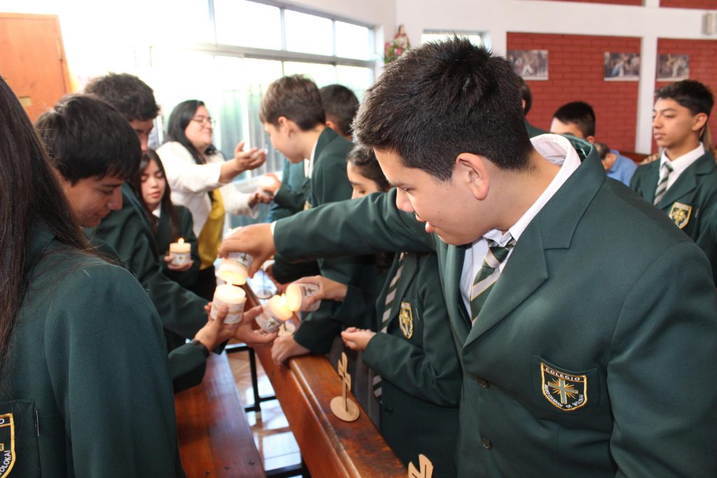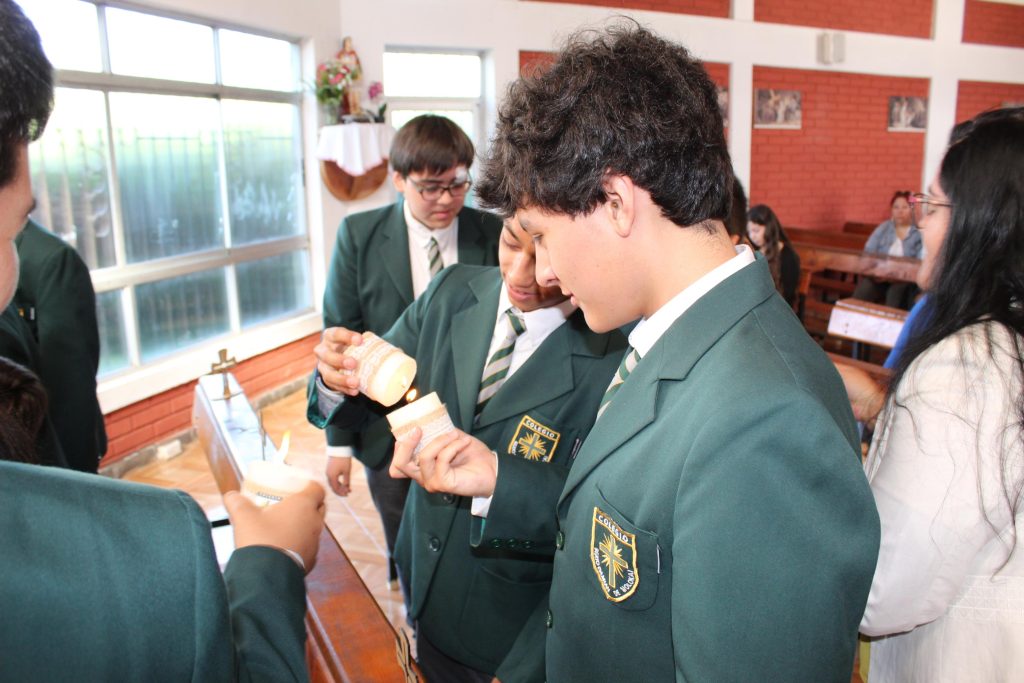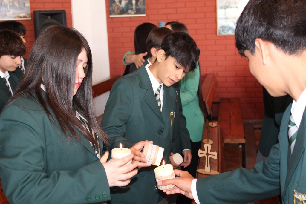 El día martes 5 de diciembre realizamos la Misa de Envío, donde entregamos como símbolo la cruz misionera y la luz de Cristo. La Cruz representa que somos hijos amados de Dios y misioneros como nuestro Patrono San Damián de Molokai. El Cirio, que representa la luz de Cristo que los guiará durante su futuro.
