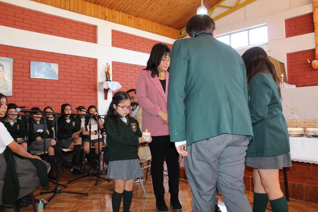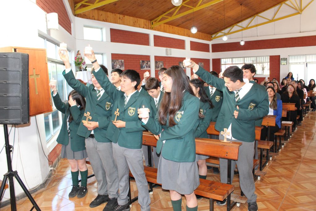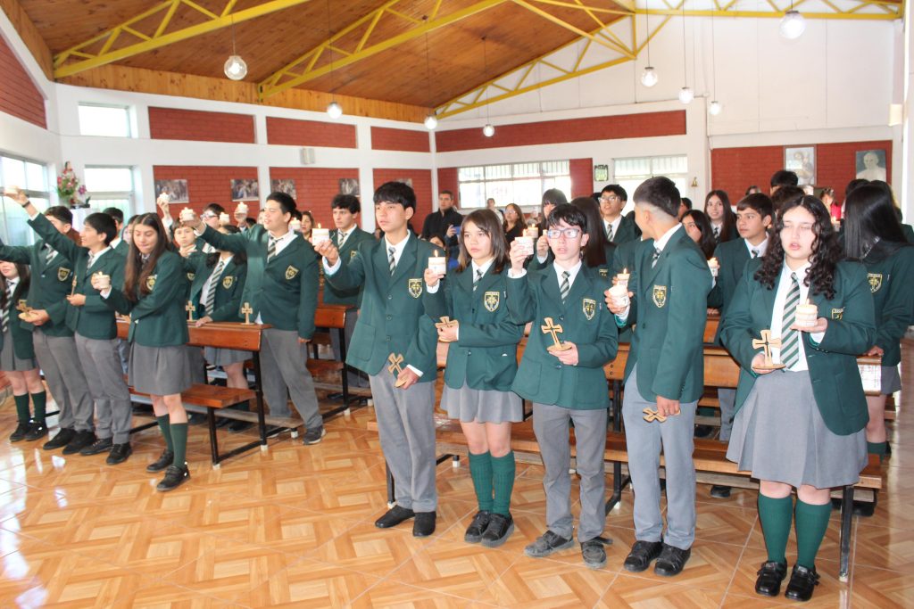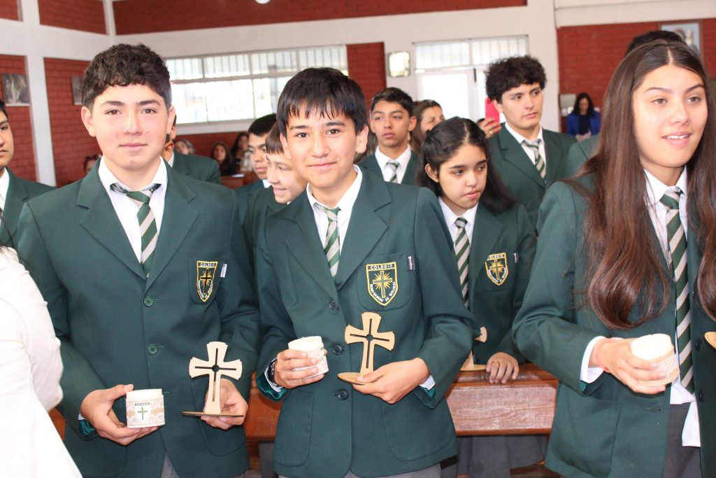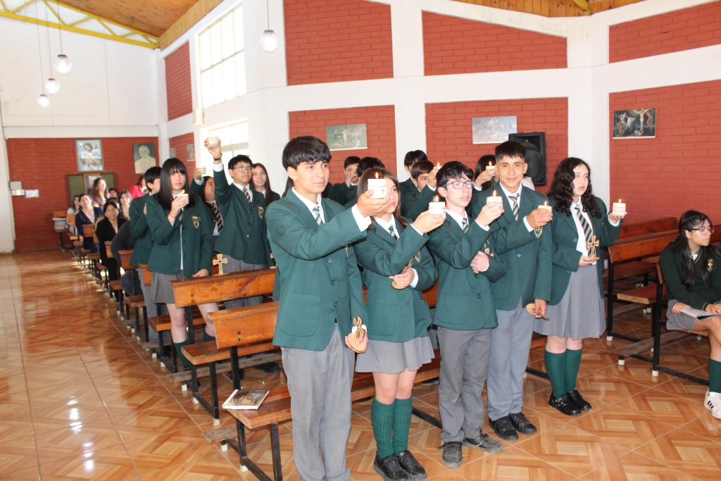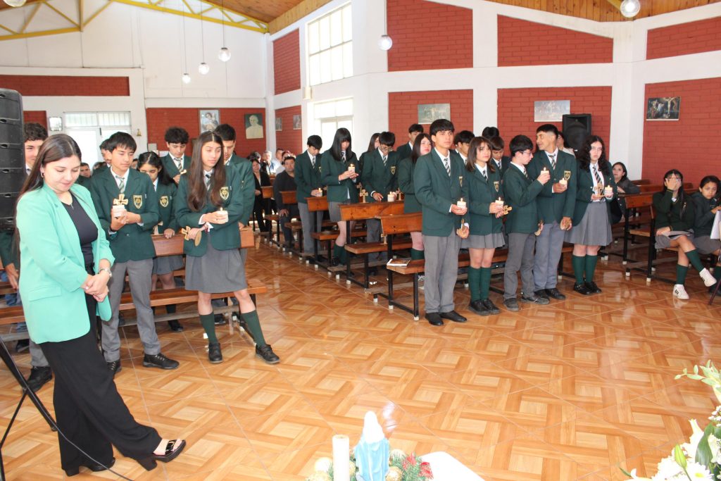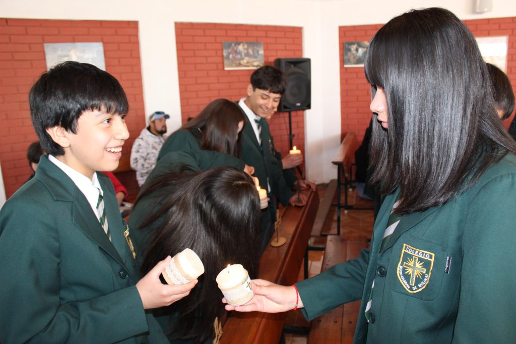 El día martes 5 de diciembre realizamos la Misa de Envío, donde entregamos como símbolo la cruz misionera y la luz de Cristo. La Cruz representa que somos hijos amados de Dios y misioneros como nuestro Patrono San Damián de Molokai. El Cirio, que representa la luz de Cristo que los guiará durante su futuro.