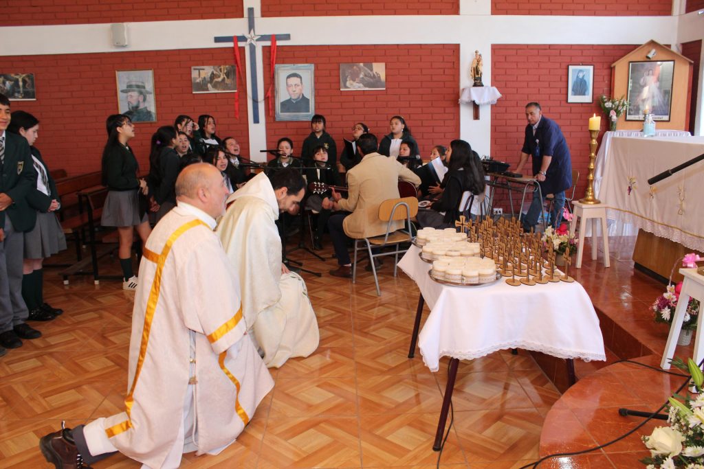 El día martes 5 de diciembre realizamos la Misa de Envío, donde entregamos como símbolo la cruz misionera y la luz de Cristo. La Cruz representa que somos hijos amados de Dios y misioneros como nuestro Patrono San Damián de Molokai. El Cirio, que representa la luz de Cristo que los guiará durante su futuro.