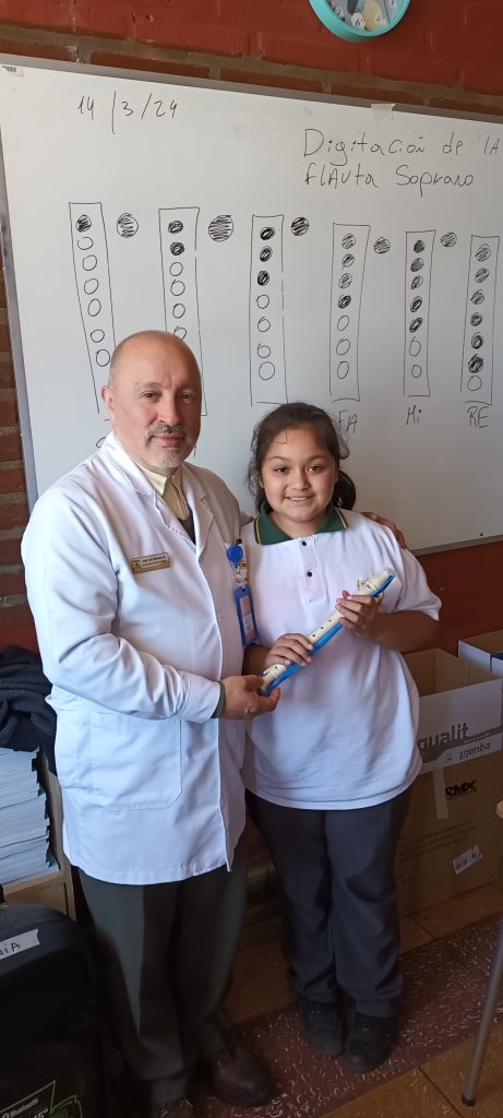 Todos los año nuestro colegio hace entrega a las y los estudiantes de quinto año básico una flauta soprano, material que es indispensable para el desarrollo de la clase de música en la ejecución instrumental.
