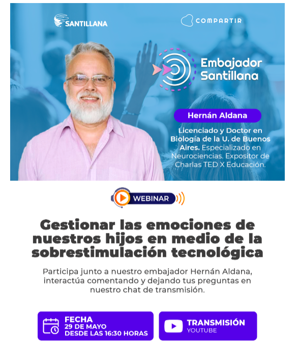 INVITACIÓN WEBINAR PARA PADRES Y APODERADOS: «Gestionar las emociones de nuestros hijos en medio de la sobreestimulación tecnológica» 27 de mayo de 202427 de mayo de 2024