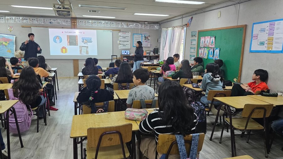 Durante la jornada, visitó los cursos de 3° a 7° básico, entregando recomendaciones para un uso seguro y responsable de las plataformas digitales. La actividad permitió el diálogo con los estudiantes, quienes participaron activamente, compartieron experiencias y resolvieron dudas relacionadas con seguridad digital, límites de uso y autocuidado en línea.