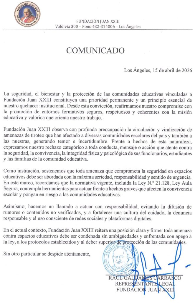 COMUNICADO DE FUNDACIÓN JUAN XXIII